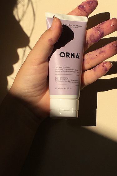 Com a pele limpa, aplique uma pequena quantidade do esfoliante na ponta dos dedos.