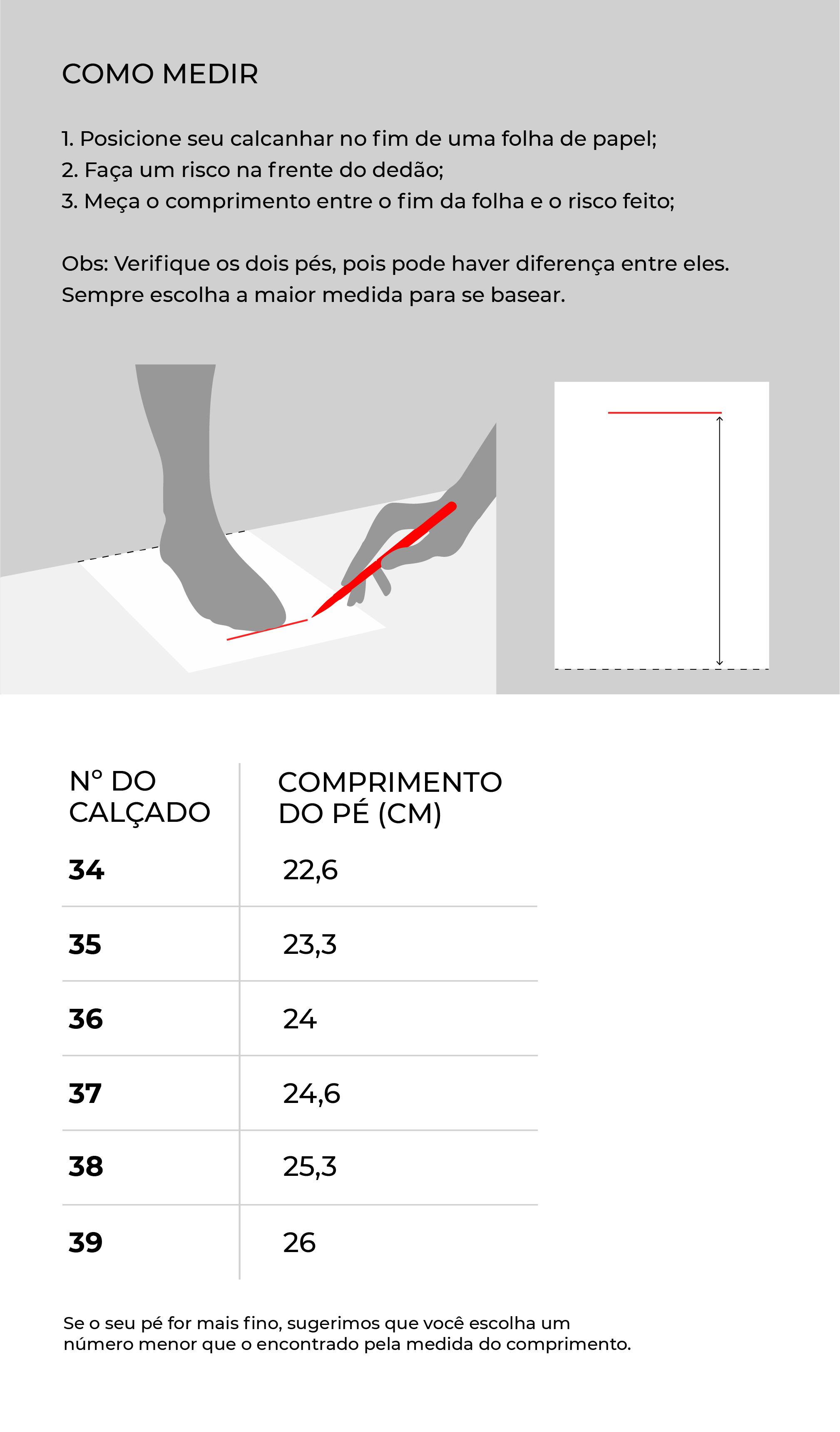 Tamanho 39 = 26 cm